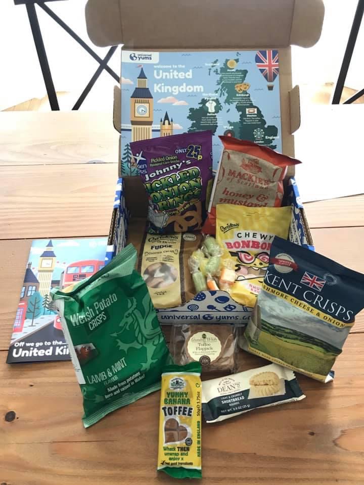 Lunch: Various snacks from the UK (UK Universal Yums box)
